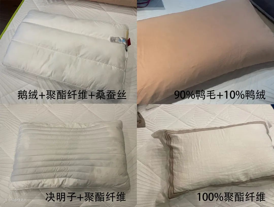 可乐的选择很折中,有一定支撑性但又偏软的记忆棉;高度适中有分区的软管枕;上层决明子填充下层聚酯纤维的枕头她都很喜欢。