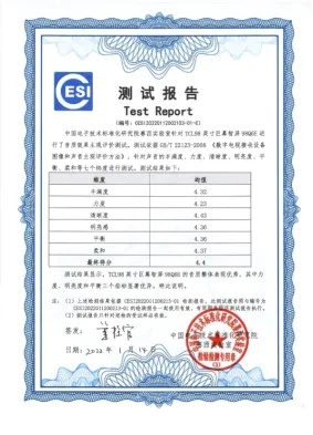 而且评测所在的影视视听室,也是专业级的试听环境,是电子标准院最新耗巨资打造的国内顶级视听室之一,其混响时间可控调整范围覆盖0.2s至0.6s区间,支持立体声、多声道、三维声重放,支撑了多项编解码、消费电子产品标准技术验证工作。测试也依据符合国家主观评价标准的试听测试体系,针对声音的丰满度、力度、清晰度、明亮度、平衡、柔和六个纬度进行了测试。