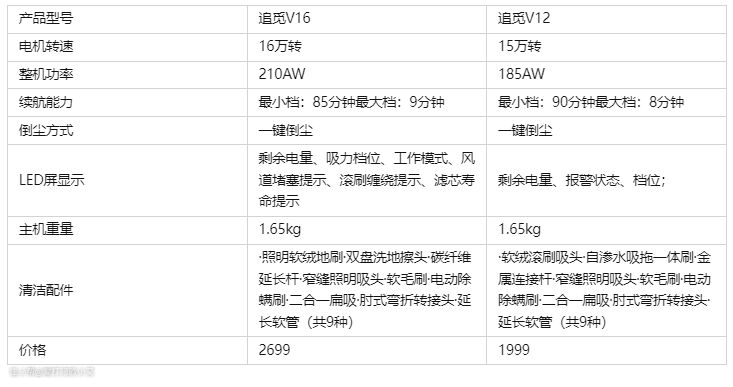 所以找其他几款卖得还不错的吸尘器拉个参数表格让大家对比一下: