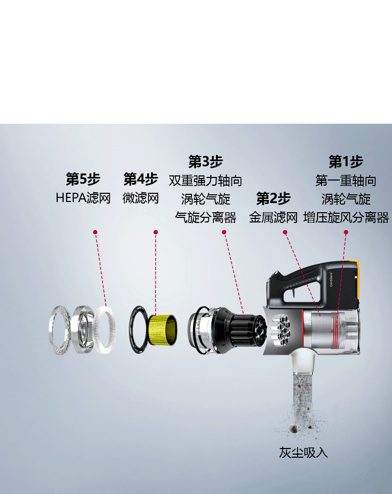 尘杯过滤的原理是通过高速旋转的电机分离垃圾和气体,再通过特定的过滤材质,将分离出的气体进行再次净化,避免二次污染,这样的过滤方式相比较尘袋过滤而言,不需要更换尘袋,比较方便。