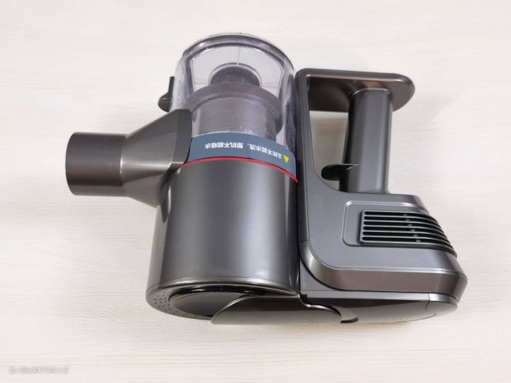 得益于整机采用的分体式结构设计,使得机器减少了很多缓震部件的用量,这就使得机器轻巧了许多,并且这款吸尘器的重心设计也很巧妙,力气小的女生也能单手轻松举起。