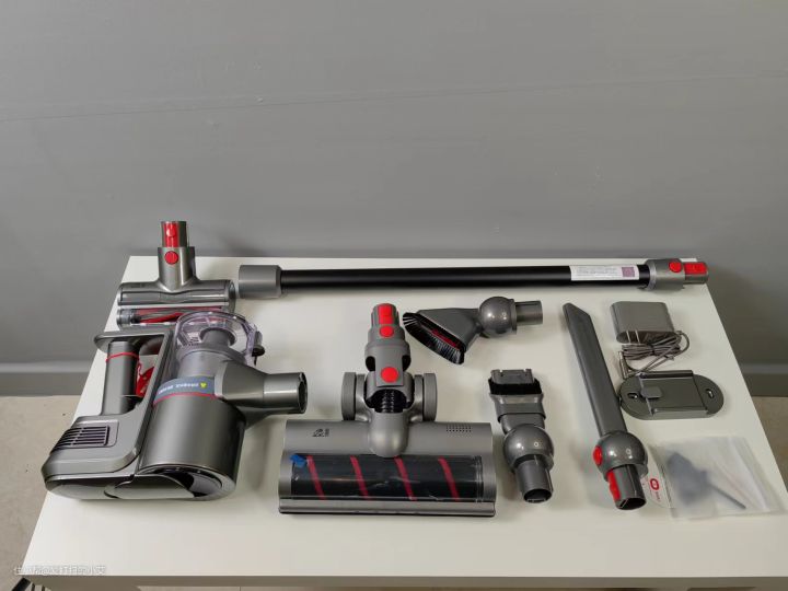 打开全部包装,可以看到配件是相当齐全的,除了主刷头电动软绒滚筒地刷外,还配有软羽刷、二合一宽嘴刷、扁吸嘴以及电动除螨刷四个刷头,能处理窗帘、沙发、车内等各种场景的清洁问题,实用性很高,值得一提的是,升级款T11 Cyclone Rinse还可以选配只有高端系列T12才有的旋转擦地刷了,吸尘和擦地可以同时完成,全屋清洁更方便省力。 总体风格还是延续小狗一向的简洁大方,看起来质感很好。