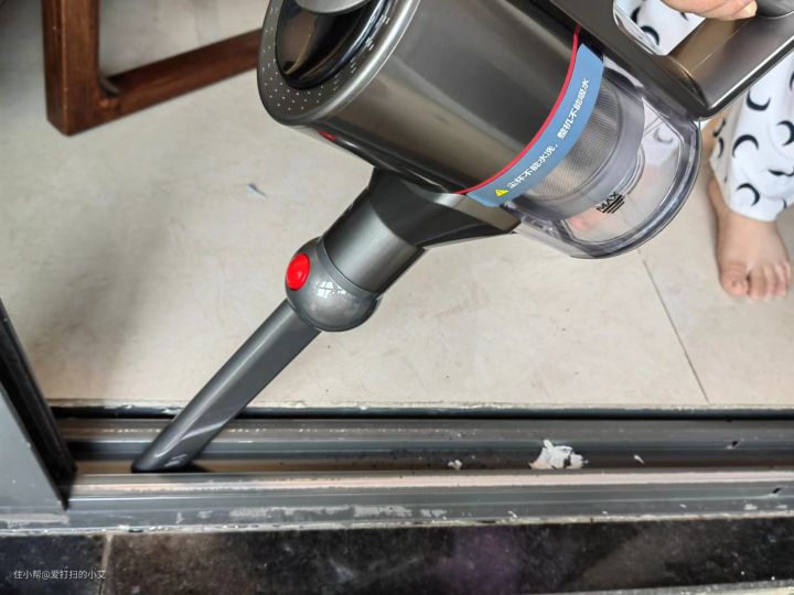 我们家的推闸门那边还是很多灰尘的,我换上扁吸嘴,来给大家测评一下