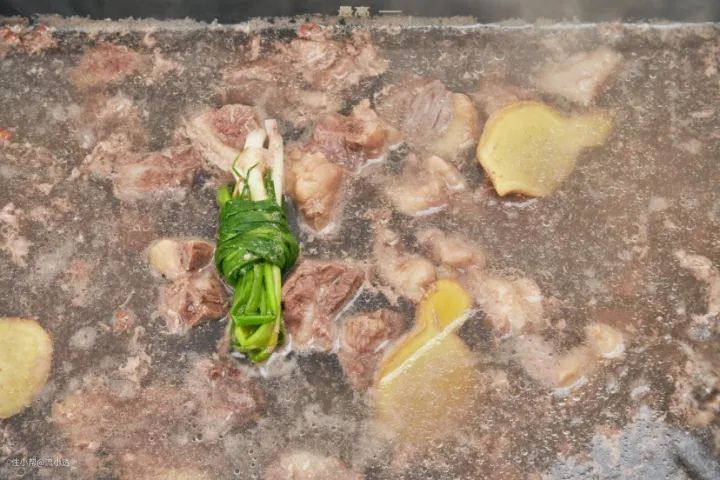 倒入适量开水,加葱姜八角桂皮香叶干辣椒,大火煮开转小火盖盖焖煮1小时。