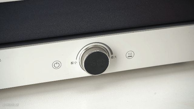加热板下面是一个开关键和火力调节的无极旋钮显示屏,旋转旋钮可以就可以看到调节的火力大小,更加直观和清晰。