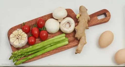 食材:厚切牛排、迷你小番茄、大蒜一头、芦笋、海盐 黑胡椒、椒榄油、迷迭香、口蘑、黄油一块