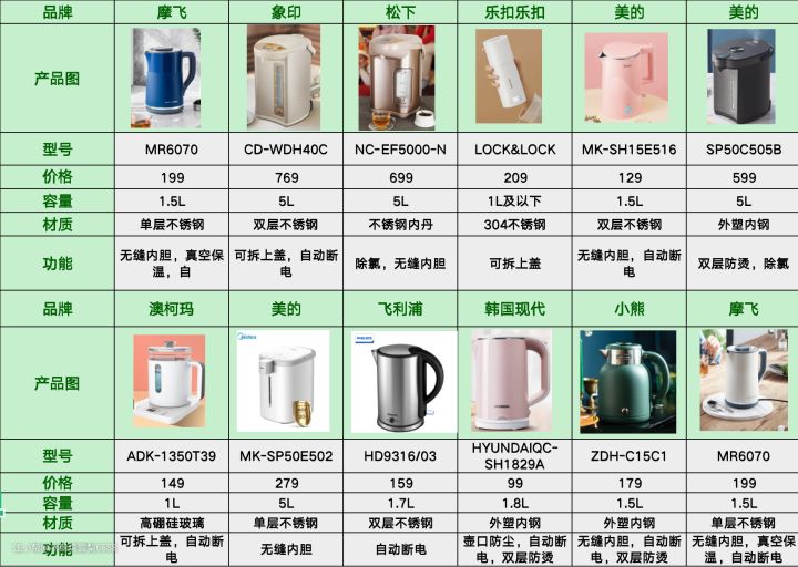 家里没有热水壶真是太不方便了,早起不能及时喝到温水,后来我就给自己的小公寓配备了一个热水壶,因为独居使用,饮水机没必要买,所以就买了一个两升的小热水壶,使用非常方便,下面就是我这几天耗费时间所整理的一些相关资料,非常实用,现在分享给大家,可以作为参考。