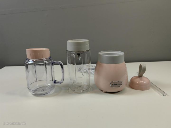 (1)除了主机以外还配备了一个梅森杯和一个便携杯,还有吸管,平时在家里使用或者外出携带都很方便。梅森杯和便携杯同样采用tritan食品级安全材质,可以放心使用。