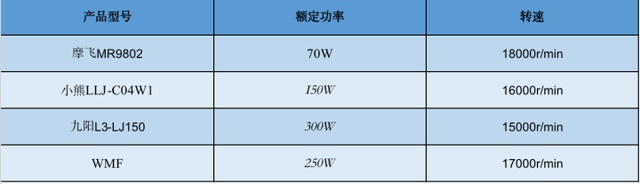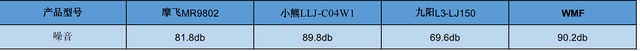 噪音(从小到大):九阳<摩飞<小熊<WNF