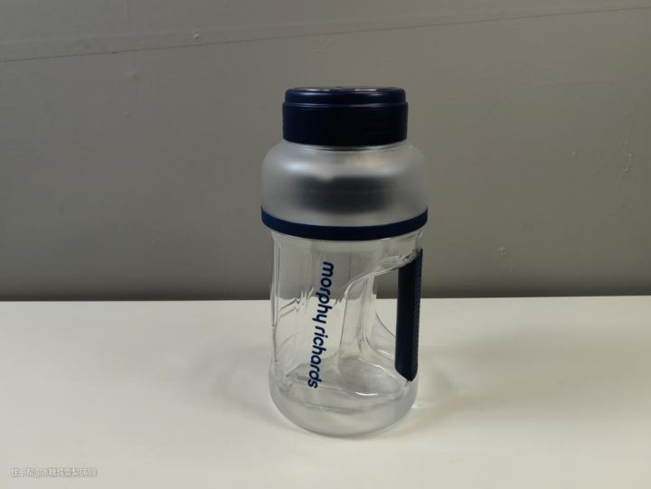 1、摩飞这款超大容量榨汁桶外观设计也非常有巧思,桶身采用Tritan母婴级材质,安全级材质入口更安心。桶身很厚实,上下为半透明的磨砂质感,桶身一侧留出一个大手握把,还有一条很厚实的手提绳,方便我们外出携带,可拧可提,双重出行方式。
