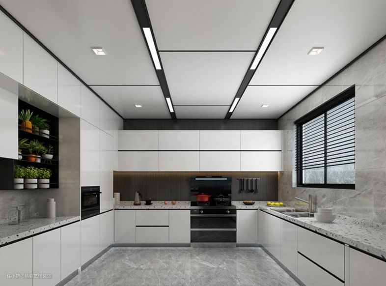 传统的铝扣板吊顶只能安装平板面光源,而蜂窝大板可根据实际需要对板材进行任意裁切,任意组装,再搭配上当下流行的轨道灯、线条灯、方灯、格栅灯等多种灯具,将厨卫效果拉满,大大提高整体装修的格调。