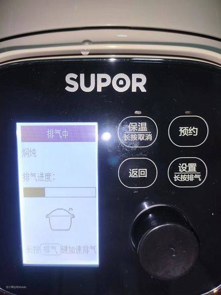 而苏泊尔料理快锅则采用全自动泄压,菜式在制作完毕后会自动泄压。如果你觉得自动泄压太慢,还可以长按“设置”键快速排气,大大减少了被烫伤的风险。