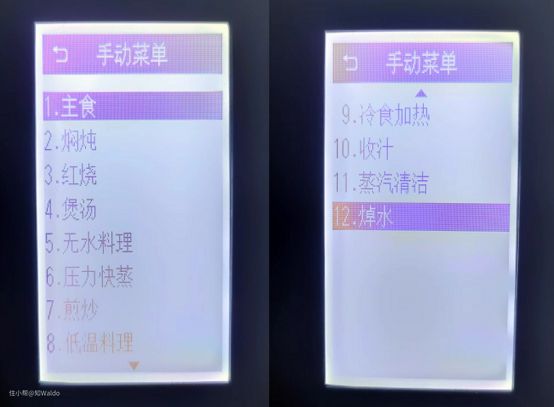 手动菜单选项里有11种烹饪方式,基本上涵盖了大部分中西式的烹饪方法,用户可以根据自己想要制作的菜式来选择烹饪方式。