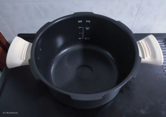 内胆拿上手的时候我还是感到比较惊讶的,一个3L锅的内胆重量竟然接近5L锅的内胆。但我深入了解过这内胆之后就不奇怪了。
