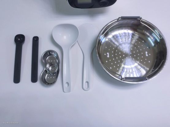 还配备了好几个尺寸不同的料理勺和蒸架,方便用户制作不同类型的菜式。