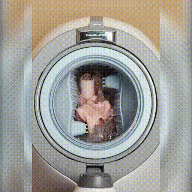 滚筒和波轮式洗衣机是靠摔打衣物脱离污渍,而小体积衣物有可能因为自身重量比较轻,摔打不到位,导致清洁效果不佳。而像觉飞内衣裤洗衣机,洗涤方式采用的是仿手搓设计,它是模拟人的手搓揉,运用硅胶袋里的荆条对内衣裤袜子这种贴身物品进行搓揉的,比手洗的更干净。360度无死角,方方面面都能清洁到位。
