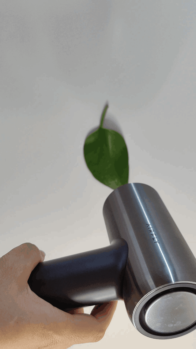 我用树叶给大家测试一下,看看用鱼子酱吹风机吹完前后对比: