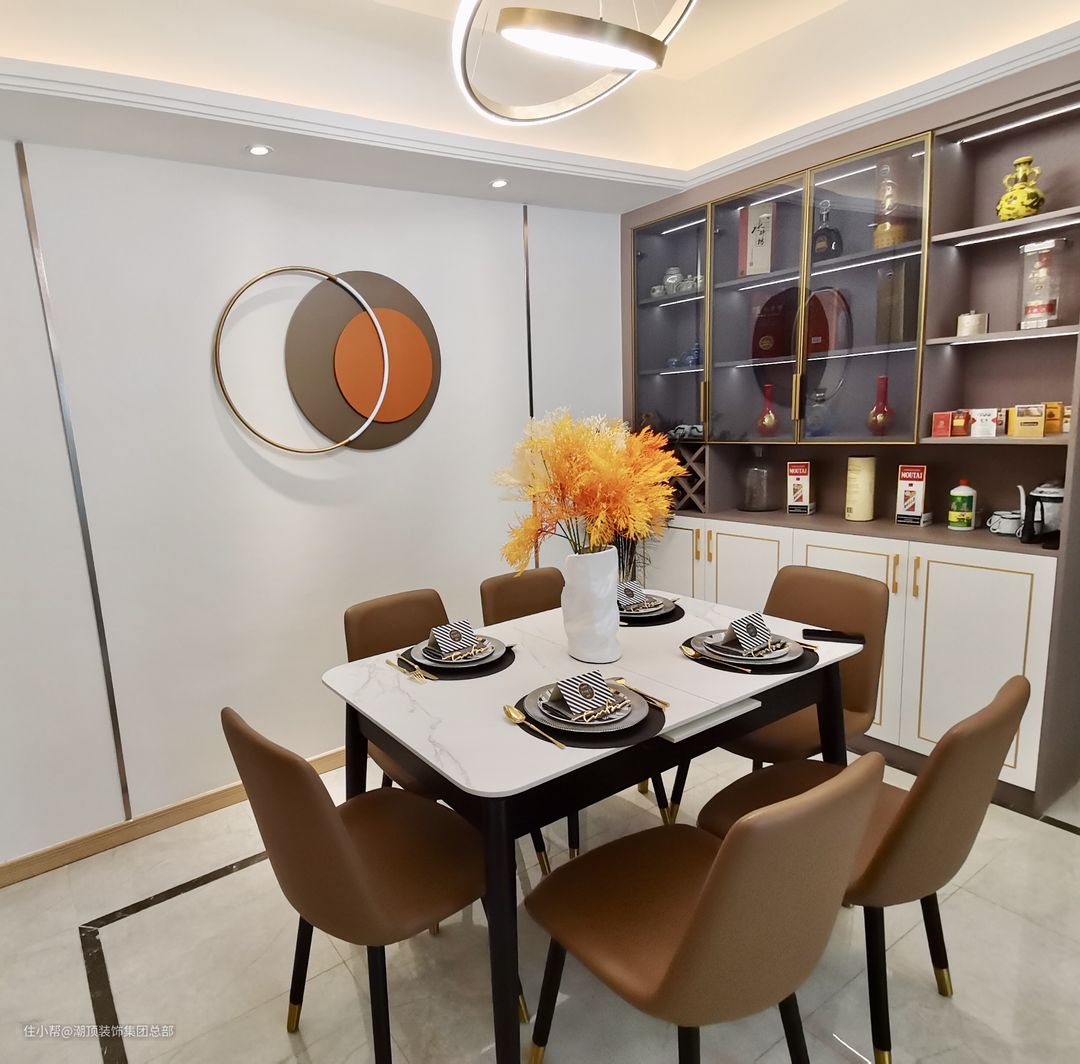 或者主灯的设计可以搭配石膏线条,但要注意保持顶面简洁。 如果想凸显轻奢感,可以加上金属扣,更显趣味。