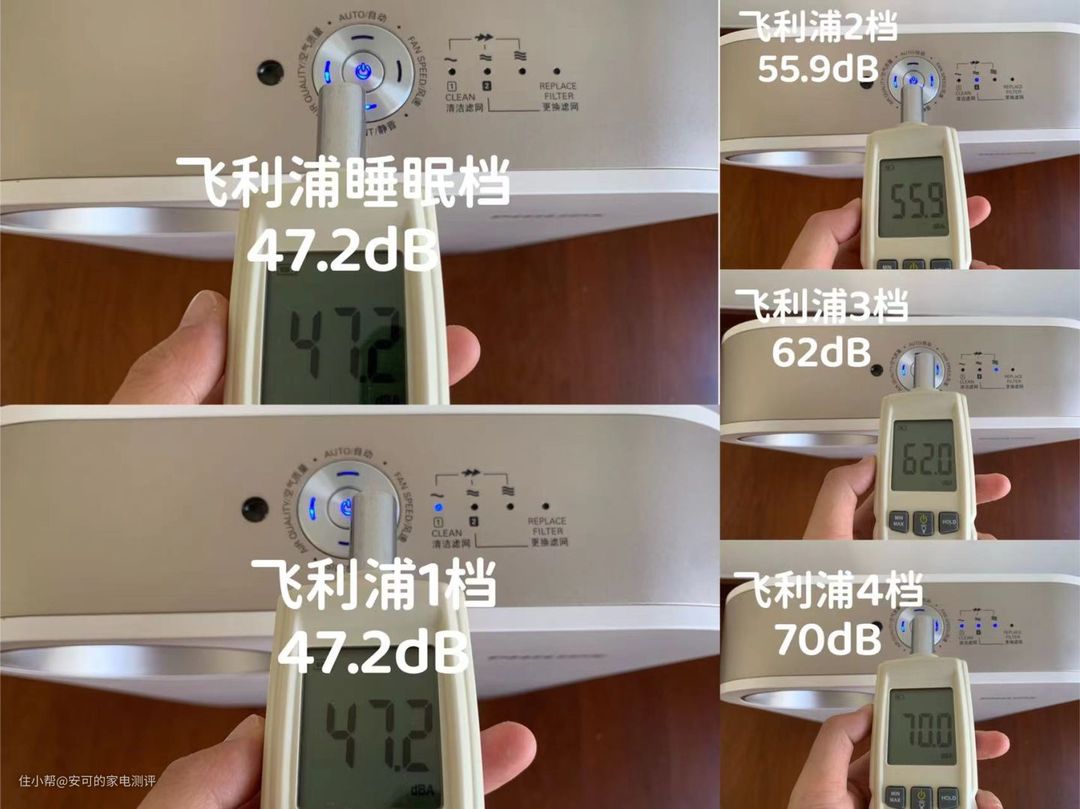 在最大风速的情况下,测试这4款空气净化器的信噪音实测值都在可以接受的范围内,数据相差不大,60dB左右,这个噪音也就相当于我们平时正常沟通的声音,在日常使用中是不会对生活产生影响的。