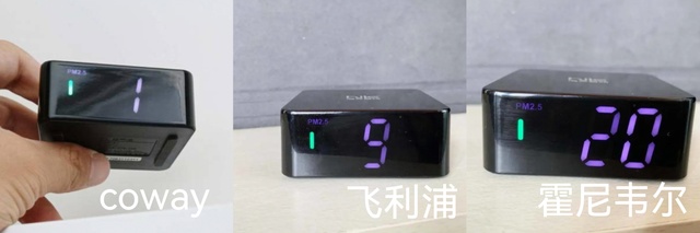 开了最大档之后,基本房间也闻不到太多味道,在这一轮对比测试中COWAY完胜,表现最为出色,本人非常满意飞利浦其次,霍尼韦尔稍弱一点。 不过开了15分钟之后,房间的PM2.5大家都降到0了,可见几款空气净化器对颗粒物污染物的净化能力还是比较好的