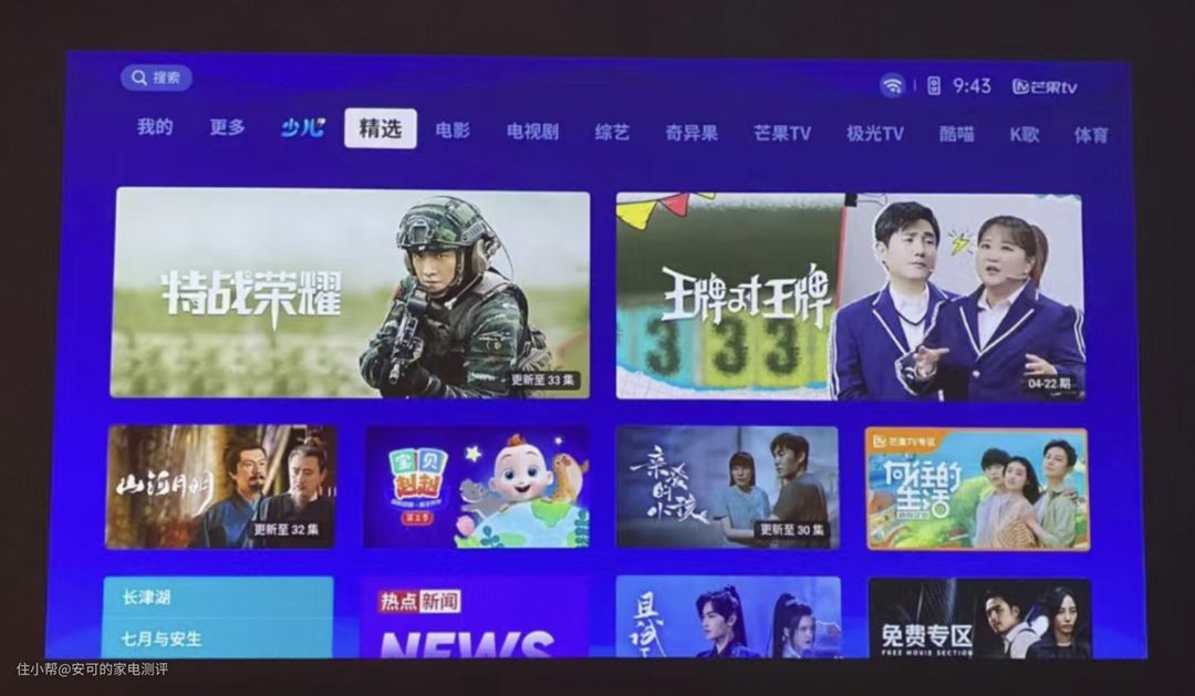 传统的投影仪在系统方面自然比不过智能投影品牌。智能投影系统能够通过网络连接实现许多特色功能,和使用各种APP,方便观看在线影片,看电视等。 其实很多投影厂商都有自研的OS操作系统,像极米的INUI UI、当贝的当贝OS、坚果的LUNA OS、米家的MIUI、峰米的FENG OS等等。给我印象比较好的就是极米的INUI UI和当贝的当贝OS,他们的操作页面都比较简洁直观,内容资源也比较丰富,支持安装第三方软件资源,满足了用户对于视频以及软件安装的需求。