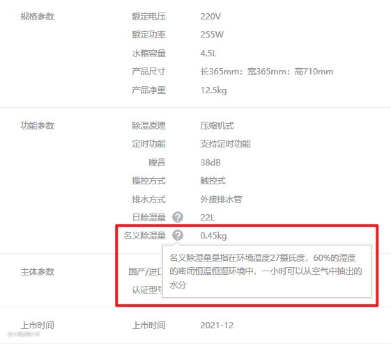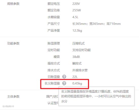 除了标注了日除湿量,还比较良心的标注了名义除湿量.