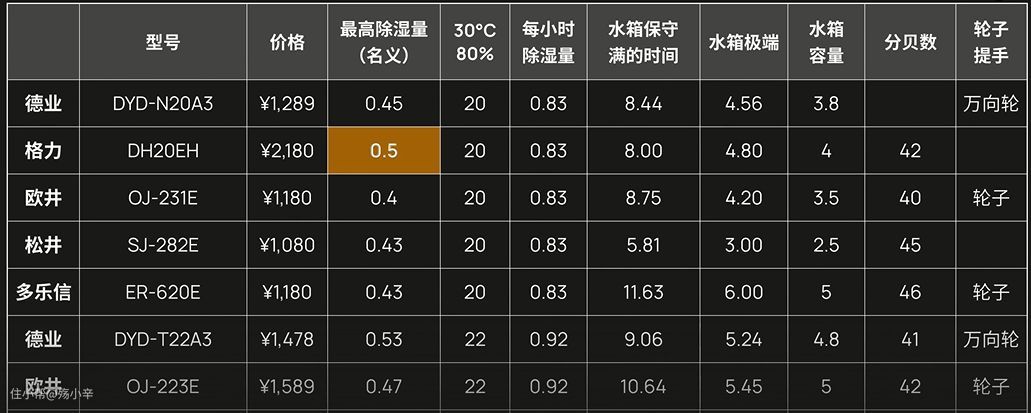 最重要的其实就两个:除湿量和噪音