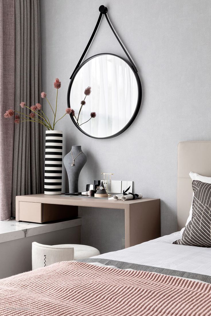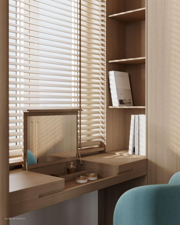 一个极简的梳妆台与飘窗的简单结合,效果也不错。