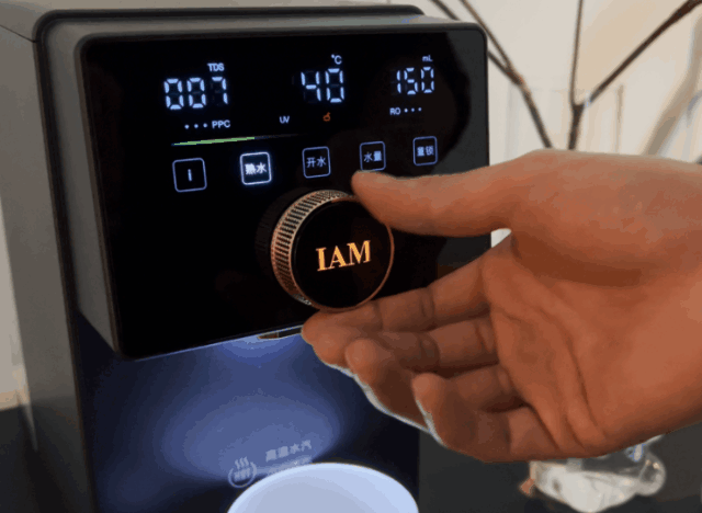 最贴心的是,水温还会通过灯的颜色传达出来!无论是温度灯条还是IAM的LOGO都会通过不同颜色传达出饮水有效信息。