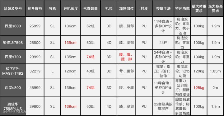 花了一下午吐血整理了几款按摩椅的参数对比,求点赞!!