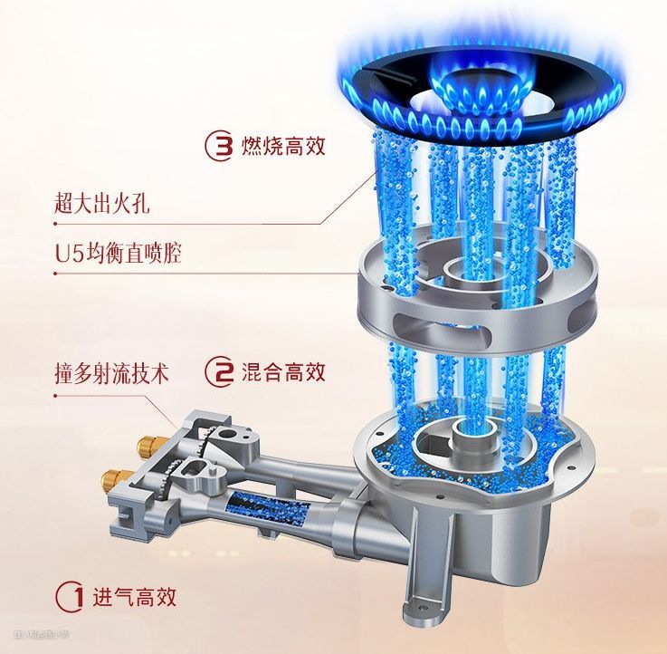除此之外还要看燃气灶的能效等级,我们实际使用燃气灶的有效火力=热负荷x热效率(根据热效率不同划分能效等级),所以买燃气灶不能光看热负荷,还要看热效率。