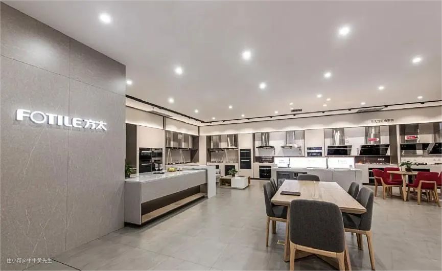 方太的体验店与一般厨电的门店还不太一样,它的每个区域都设计规划得很像是开放式的时尚厨房,整个体验店像是由千家万户具有代表性的餐厨空间错落有致地拼在一起,触手可及的真实生活化场景,确实是可以给正在选择厨电或者是装修餐厨空间的人不少灵感。