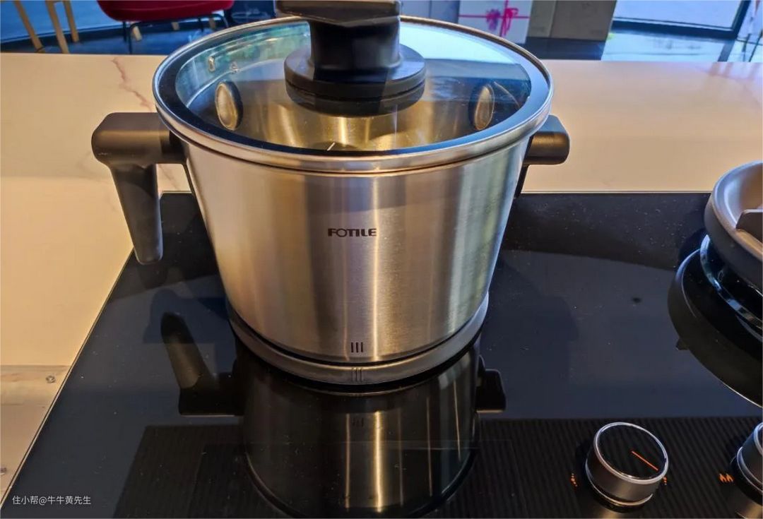 锅要称心:智动烹饪系统配的智能烹饪锅,是具有全密封双层激光焊接工艺的锅具,它不仅热得快,而且热得均匀,内部保温,外层防烫,好用也好拿,还能直接丢去洗碗机里洗,省事!锅盖设计也很贴心,斜向上的长柄宽把手,既能避免被烫手,同时也能将锅盖直接立在台面上,可以节省很多台面空间。