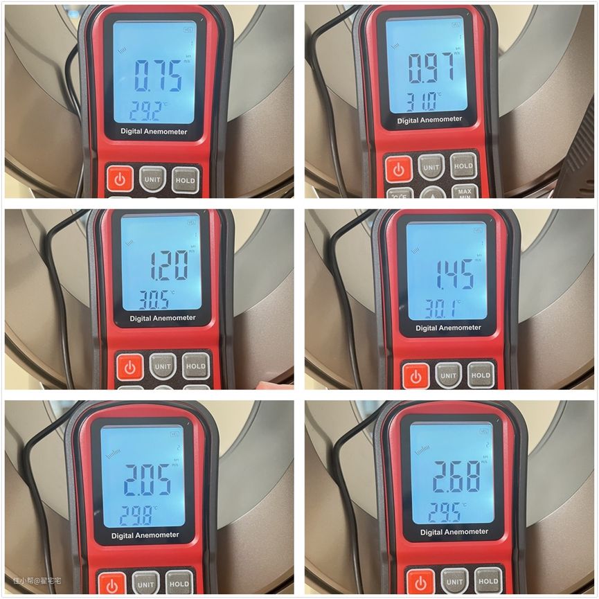 我用专业的风速仪给大家测了一下这3款空净各档的出风口的风速。