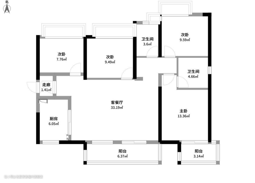 2、 将厨房靠近走廊的墙体打通,仅留外部墙体,打造完全开放式的餐厨区域,厨房面积进一步增大。