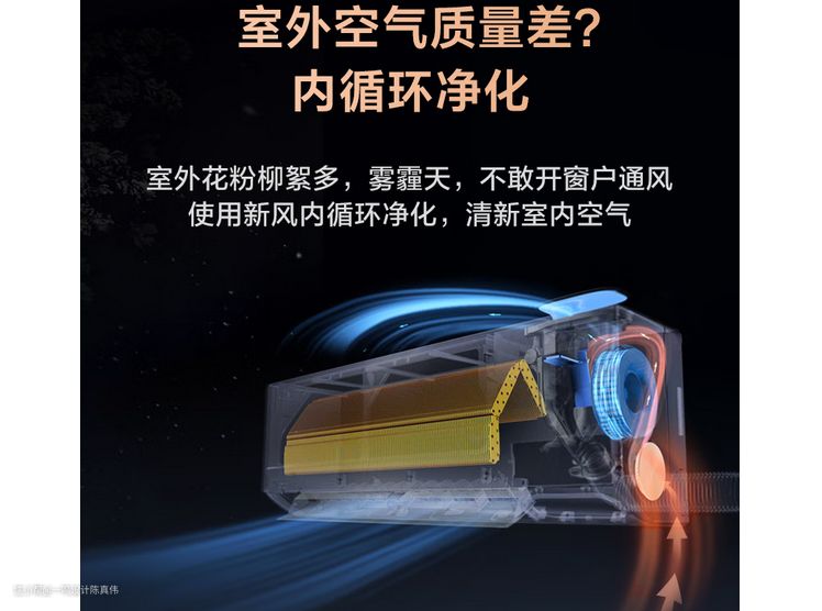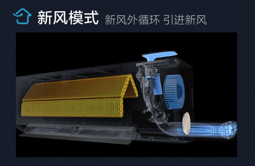 在个别场景下,如室外空气较差的花粉季节、沙尘天气,则可以启动净化模式,室内空气的抽入、净化、排出,全程不与外界发生空气交换,将环境影响降到最小。