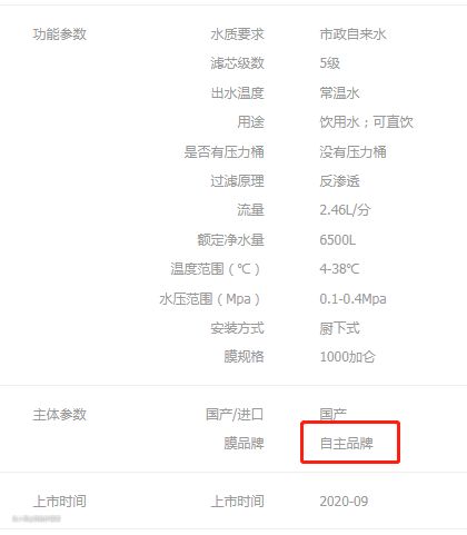 RO反渗透膜中,像陶氏、东丽这些进口品牌膜和汇通、世韩这些国产品牌膜都是不错的品牌,发展到现在差别都已经不是很大了。还有一些净水机在膜品牌位置写上自主品牌,并不是说这款机型的膜是自己做的,而是采用了自己的卷膜工艺。