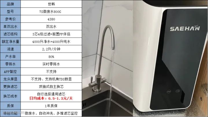 下面这款世韩3S有桶机,3:1超低废水,反渗透膜2-3年更换一次,购置成本和后期使用成本低,是一款性价比不错的RO反渗透净水机。