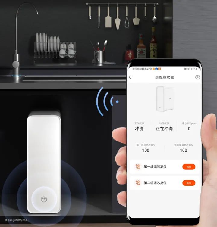 还可以通过智能APP与净水机连接后,实时查看净水机最近的使用情况,以及滤芯的使用寿命,有些净水机还可以通过APP来执行冲洗和复位操作,非常实用。