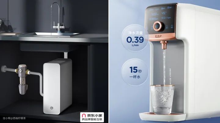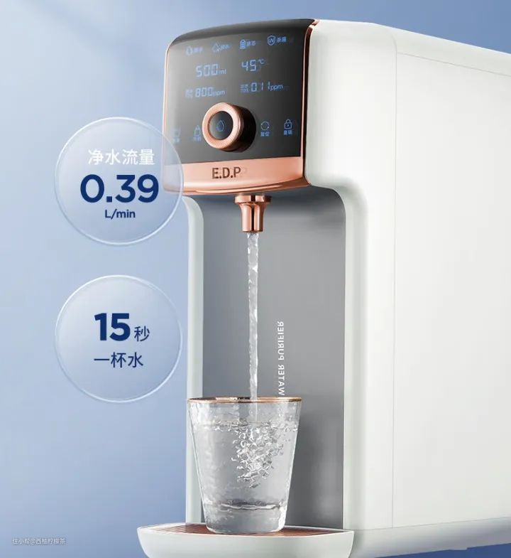 相比厨下式净水机,台式的净热一体机的优势在于颜值高,免安装,机身小巧,移动方便,还带有秒级速热功能,一机多用等优点。