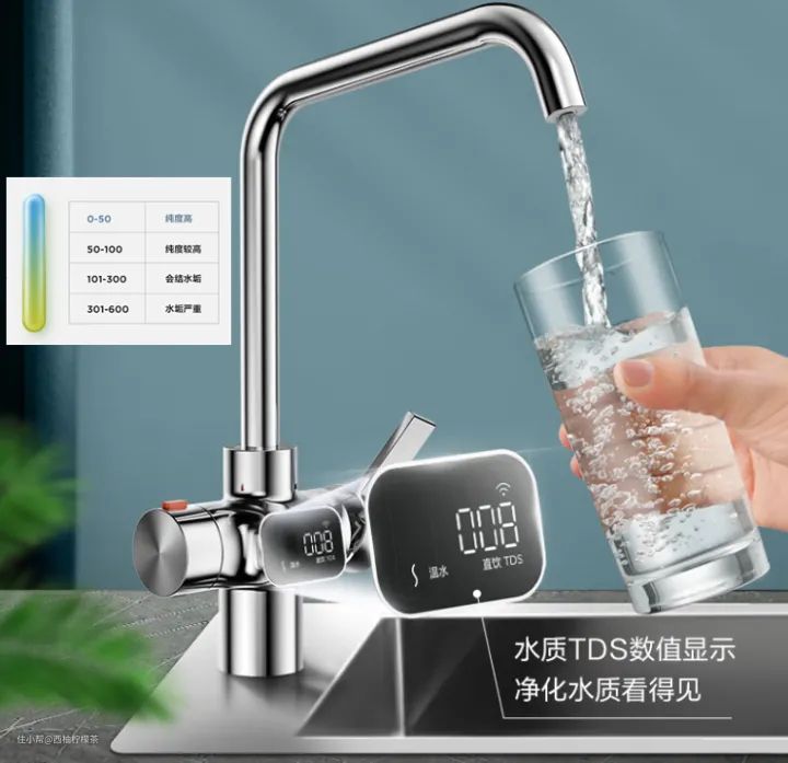 在水龙头上实时显示TDS数值,可以让我们在接每一杯水的时候都知道水质情况,在数值过高时也能及时查找原因。