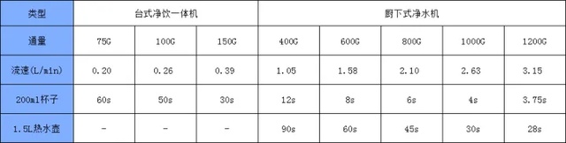 通常情况下,前面的数字越大,代表净水速度越快,效率越高,换算成水龙头上表现出来的流速为: