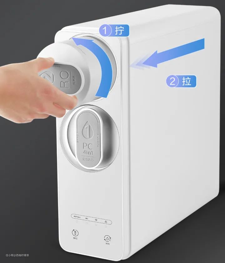 4.4L的水箱容量包括了2.2L原水箱、1.2L废水箱和1L纯水箱,水箱容量感觉不大,但亮点是采用了原废分离设计,可以有效防止废水回流,可以更好地保护滤芯。