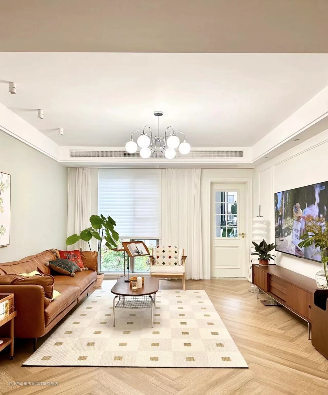 整体家具搭配棕色系+奶油系,颜色层次分明,做出温馨时尚的感觉#客厅装修#旧房翻新#旧房全改#法式风格