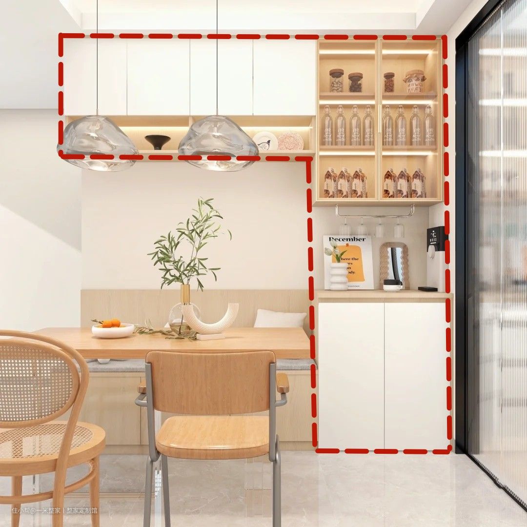 如果空间允许,建议在墙角处定制L型或I型的餐边柜。