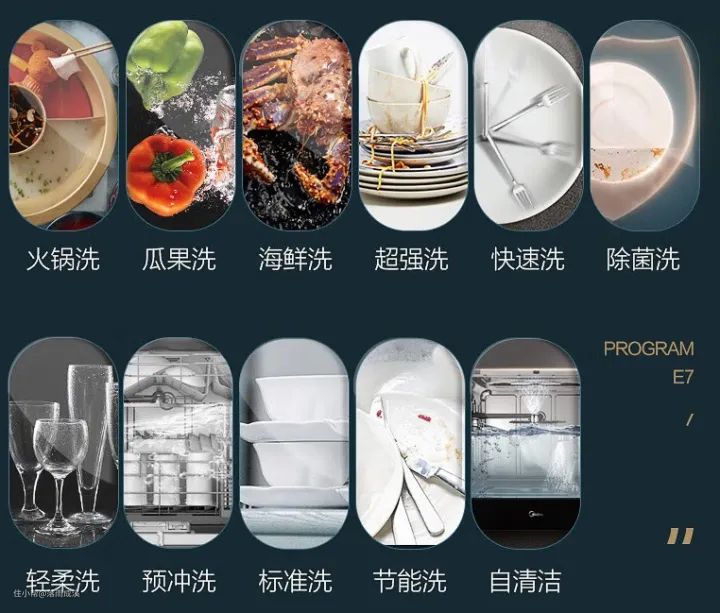 推荐理由:美的E7在同价位产品中容量较大,搭载“双变速”电机,使这款洗碗机更有针对性的处理不同脏污,并具备11种清洗模式以及自清洁模式;同时搭载冷凝、风干、热风烘干三重烘干技术,可以达到餐具干、碗篮干、内壁干的效果;最后就是72小时换气排湿,可以让餐具干爽储存,无异味具有消毒柜的“保鲜”效果。