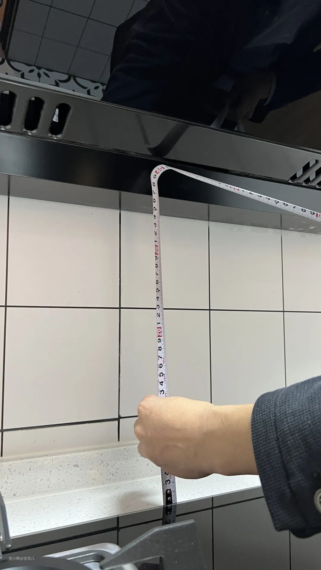 比如手肘高度为100cm,那么台面高度要在85~90cm之间。用台面高度减去8~10cm,就是灶台的高度。