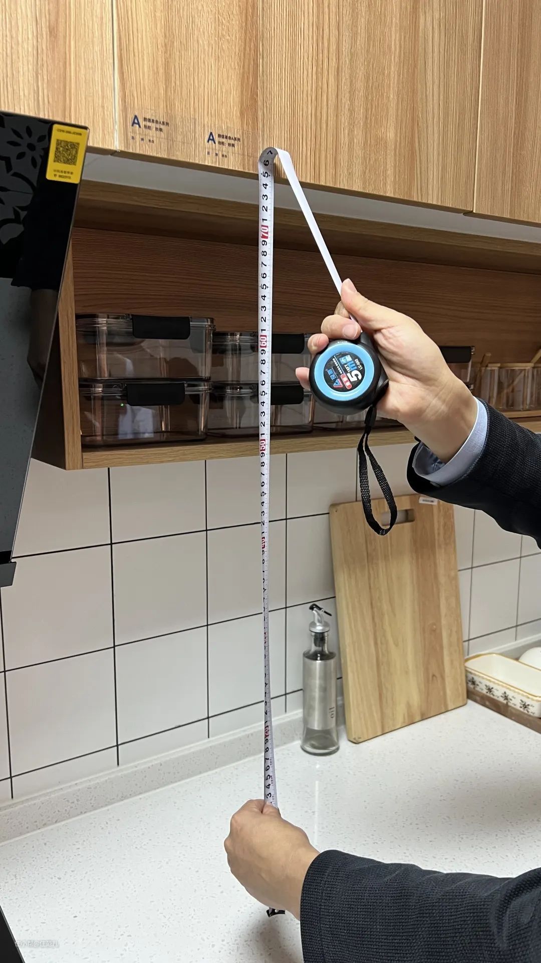确定好台面高度后,再用这个数值减去8~10cm,就是灶台的高度。如果家庭成员身高差距过大,以常下厨的人身高为准!