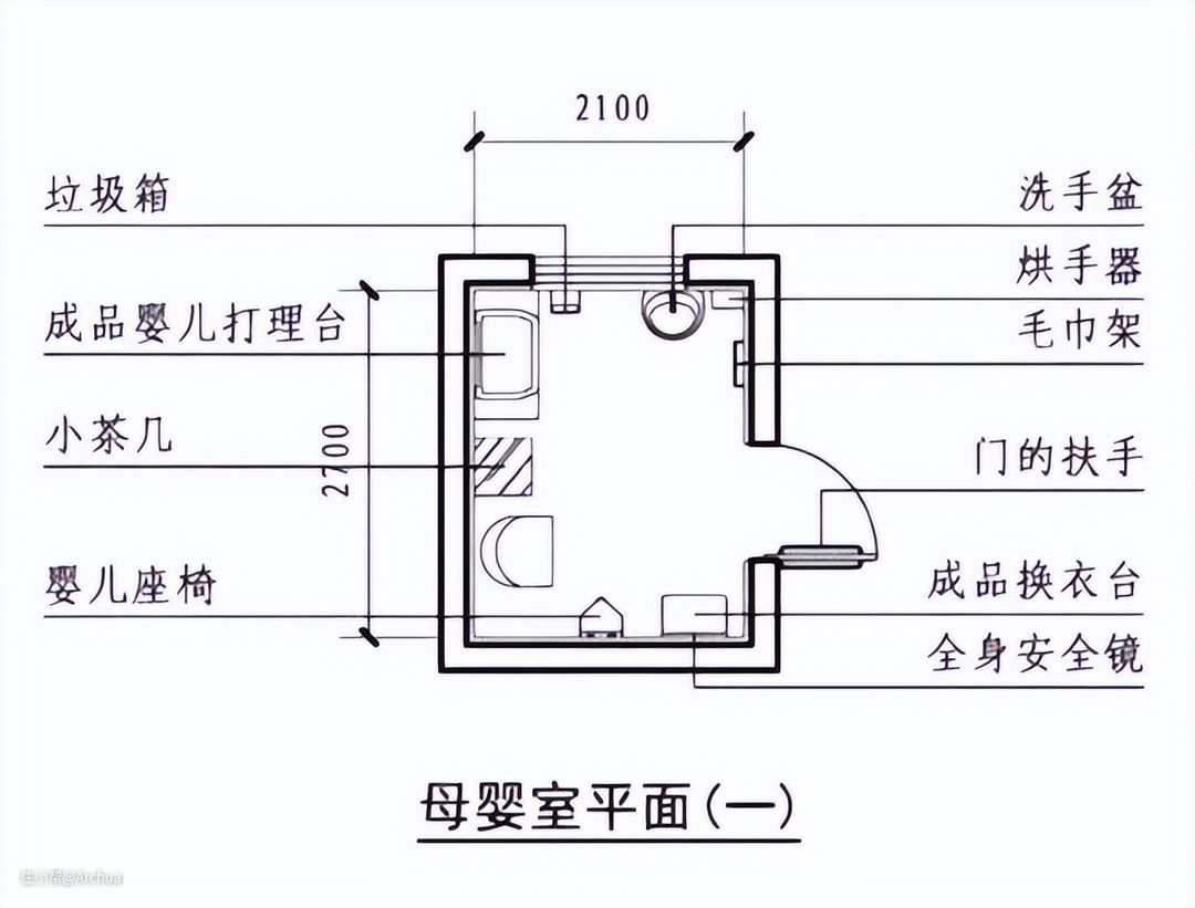 同样的门的开启应该向外开,门上应该有平放或斜放扶手,方便怀抱婴儿者或婴儿车进出。