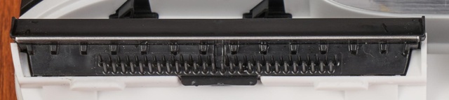 能看到这个部件上的齿梳排布还是比较密的,它会在滚刷转动的时候梳理粘在滚刷上的毛发,上方的刀片还能切断过长的毛发,及时有效避免毛发缠绕在滚刷上,从而达到毛发自清洁的效果。